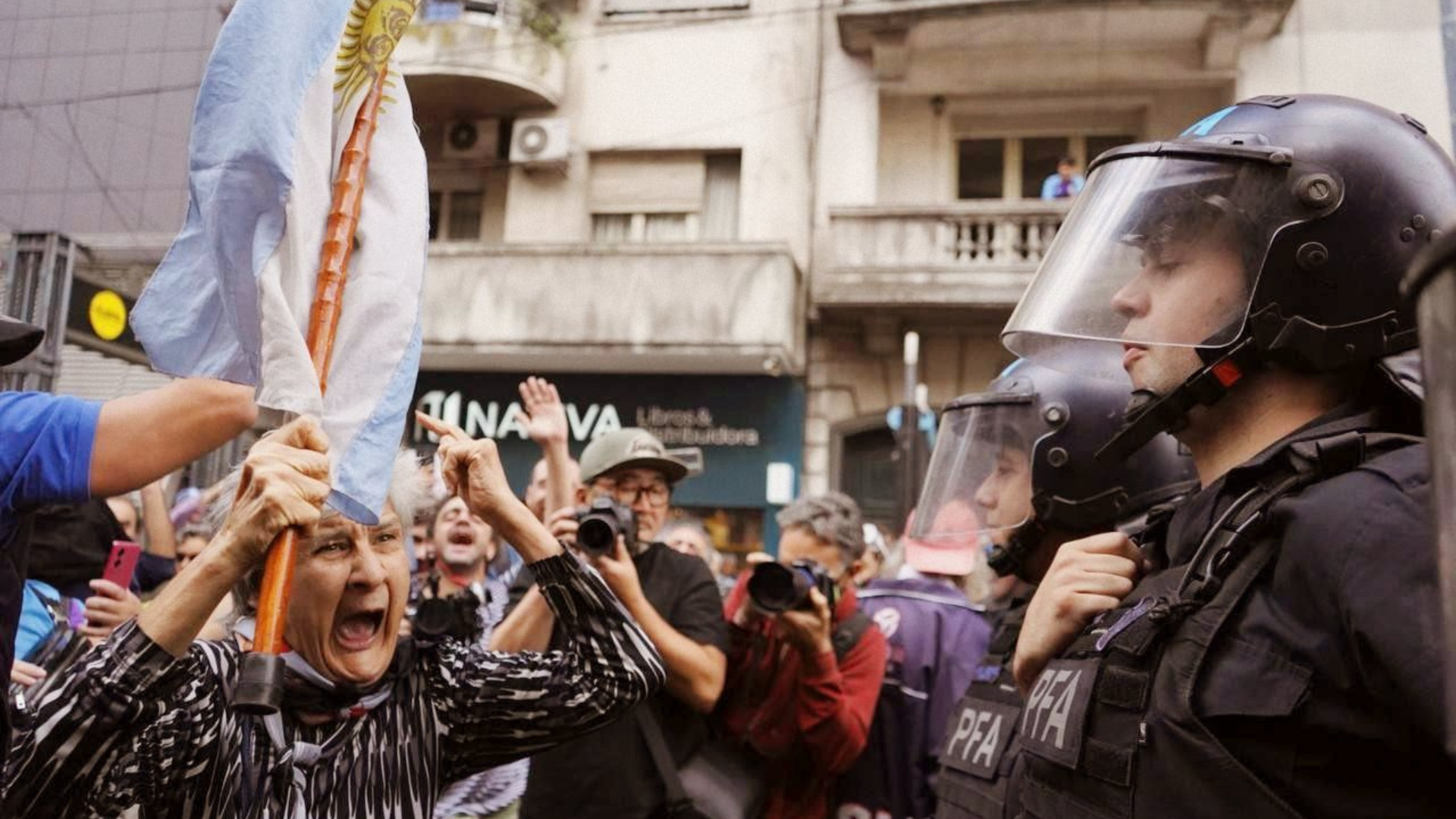 El Gobierno amenaza con reprimir. La gente se organiza masivamente para asistir a la manifestación. La policía de la ciudad llega al operativo al grito de “vamos leones”. La protesta sigue siendo un derecho. Bullrich instala inhibidores de señal, los vecinos ponen a disposición sus propios medios. Para que no parezca que es todo terror, para que el miedo no nos inmovilice, transmitimos esta información.